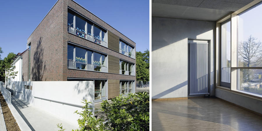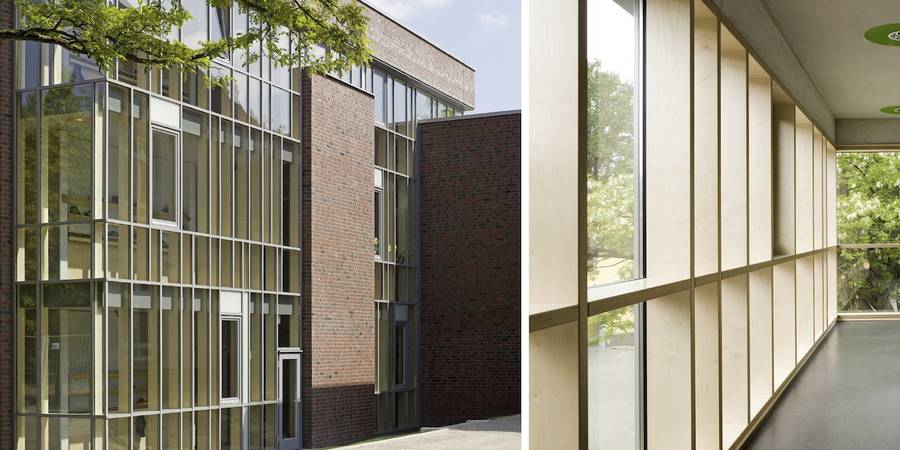 Als Ersatz für baufällige Schulpavillons wurde der dreigeschossige Anbau an die Grundschule realisiert.