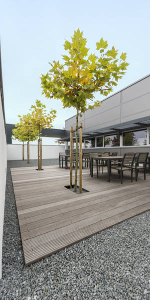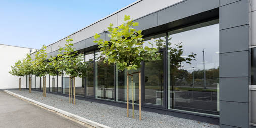 Die Produktionsstätte aus dem Jahr 2001 wurde um eine Fertigungshalle von 1400m2 erweitert. Die Materialien sowie deren Farbgebung entsprechen der bestehenden Struktur und fügen sich in das Gesamtkonzept ein. Im Eckbereich zwischen Erweiterung und dem vorhandenen Bürogebäude entstand als Aufenthaltsbereich für Mitarbeiter ein Innenhof mit Terrasse. Die Dachfläche des Neubaus wurde mit einer Photovoltaikanlage versehen.