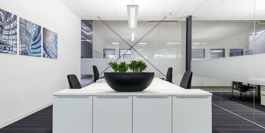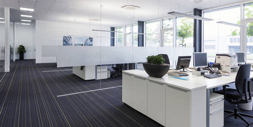 In einer der Bestandhallen wurde eine 500m2 große Produktionseinheit zu Büroflächen umgebaut. Durch transparente Innenwände und eine großzügige Verglasung in der vorhandenen Fassade entstand hier ein lichtdurchfluteter, offener Vertriebsbereich.