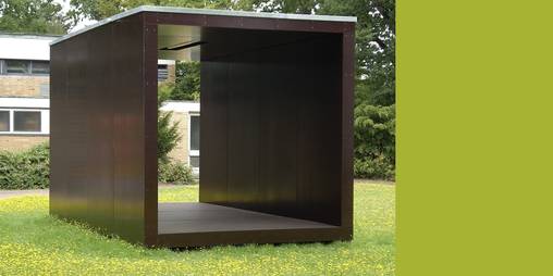 Die offene Konstruktion lädt zum Betreten der "Ausstellung" ein. Realisierte Projekte werden vor Ort analog zur Ausstellung beschildert, um den Bezug zum Leitbild herzustellen.